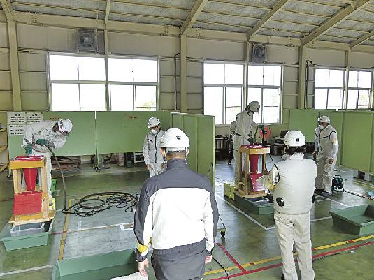 30 người tham gia thi lấy chứng nhận vị trí bê tông trong nhà ở thành phố Higashi-Hiroshima, tỉnh Hiroshima
