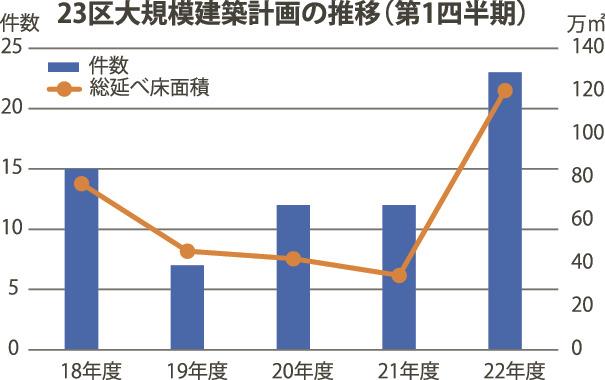 Số lượng phương án kiến trúc quy mô lớn (với tổng diện tích sàn từ 10.000m2 trở lên) được công bố trong quý I (từ tháng 4 đến tháng 6) năm 2022 trên địa bàn 23 phường của Tokyo là 23, tăng 11 so với cùng kỳ năm ngoái. Tổng diện tích sàn tăng 248,2% lên 1.203.586 mét vuông, mức cao nhất trong vòng 5 năm qua. Khi phong cách làm việc và lối sống thay đổi do cuộc khủng hoảng coronavirus, các dự án phát triển quy mô lớn đang tăng lên bên ngoài các khu vực trung tâm Tokyo như Phường Itabashi và Phường Edogawa.