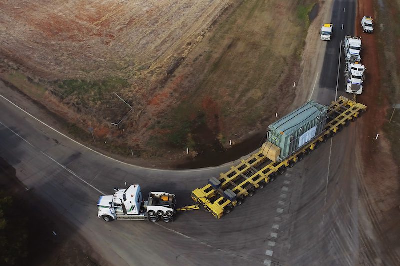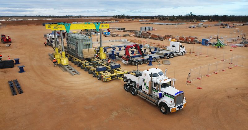 Phần mới nhất của bộ công cụ khổng lồ để xây dựng nâng cấp cơ sở hạ tầng truyền dẫn của Úc yêu cầu một xe kéo 128 bánh được chế tạo ở Pháp và hành trình 900 km để di chuyển nó từ Port Adelaide đến Buronga ở NSW.
