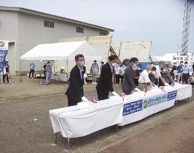 On the 10th, the 50th anniversary of the opening of the Sekiya diversion channel, which is 1.8 kilometers long and 270 meters wide, at the mouth of the Shinano River (Nishi Ward, Niigata City), the Hokuriku Regional Development Bureau held a ceremony to commemorate the 50th anniversary of the passage of the Sekiya diversion channel. ” was held in the park in front of the Sekiya Bunsui Museum.