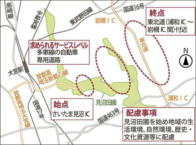Tuyến đường mới sẽ mở rộng Tuyến Shintoshin của Đường cao tốc Shuto từ Saitama Minuma IC và kết nối với Nút thu phí Urawa-Iwatsuki của Đường cao tốc Tohoku. Khoảng cách đường thẳng là khoảng 5 km.