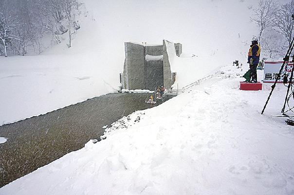 Miệng đường hầm thoát nước tạm thời đã hoàn thiện (do Văn phòng xây dựng đập Chokai cung cấp)
