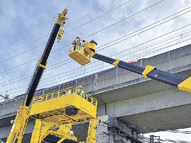 Xe chuyên dụng cho phép thay thế cột điện hiệu quả trong thời gian ngắn bất kể môi trường dưới gầm cầu vượt như thế nào. Bạn thậm chí không cần giấy phép đường bộ để đảm bảo một sân làm việc. Có tổng cộng khoảng 20.000 cột điện trên Shinkansen do JR East quản lý. Tính đến cuối năm tài chính 21, khoảng 2.250 đường dây chống động đất đã được hoàn thành. Chính sách là làm khoảng 4.000 cột điện có khả năng chống động đất vào cuối năm tài chính 21-27, bao gồm gia cố phần trên và phần dưới của cột điện và thay thế bằng cột ống thép.