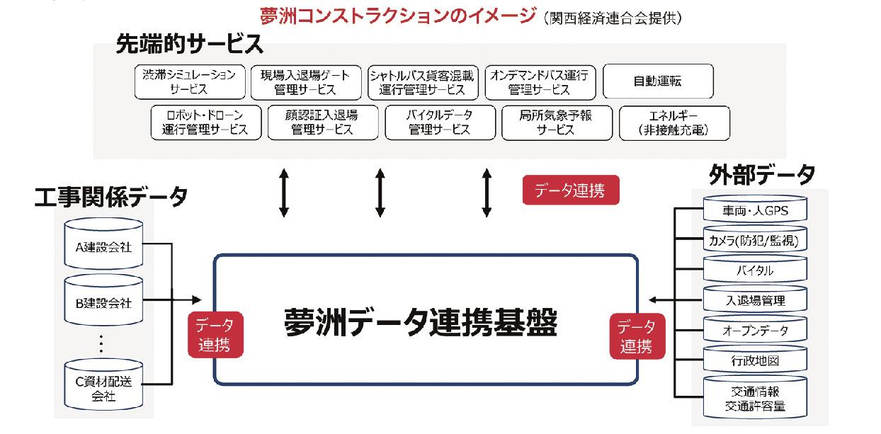 Cốt lõi của hội đồng là Nền tảng liên kết dữ liệu Yumeshima, đóng vai trò như một hệ thống cốt lõi, bằng cách liên kết dữ liệu liên quan đến xây dựng do các tổ chức và công ty liên quan nắm giữ, cũng như dữ liệu bên ngoài, để cung cấp các dịch vụ tiên tiến ở Yumeshima, nơi lớn - Các dự án xây dựng quy mô tập trung. Chúng tôi đang xem xét việc thực hiện xây dựng an toàn và thông suốt để sử dụng.