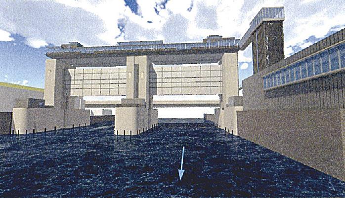 Quận Osaka / Cổng nước Shin-Ajigawa Dự định khởi công xây dựng vào năm 2012, hiện diện với cấu trúc nhiều lớp
