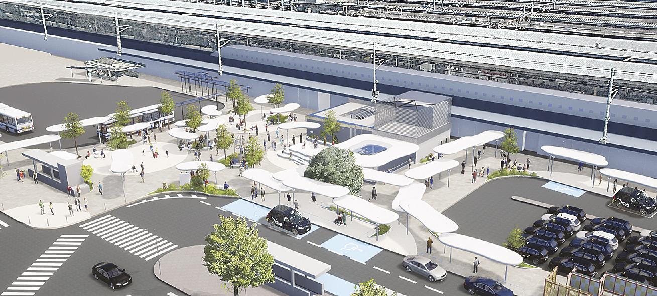 The maintenance area is about 8000 square meters. According to the proposal, an open space will be secured by removing the "lily fountain". There will be three plazas that will serve as staying spaces where events can be held. A taxi stand will be located on the south side of the square, and an express bus stand will be located on the north side. Pedestrian space will be expanded to about five times the current size, and the line of flow to transfer destinations and towns will be clarified. Universal design will be considered for taxi stands.
