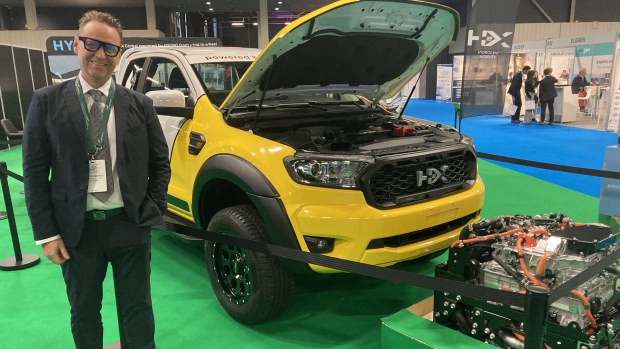 Người đồng sáng lập H2X Chris Reitz với một nguyên mẫu ute chạy bằng nhiên liệu hydro. Hans van Leeuwen