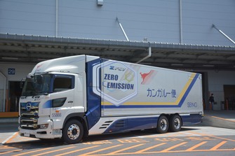 Một chiếc xe tải vận tải chạy bằng pin nhiên liệu hydro được giới thiệu để thử nghiệm tại chi nhánh Fukagawa của công ty hậu cần Seino Transportation Co. ở phường Koto của Tokyo vào ngày 17 tháng 5 năm 2023. (Mainichi / Seiho Akimaru)