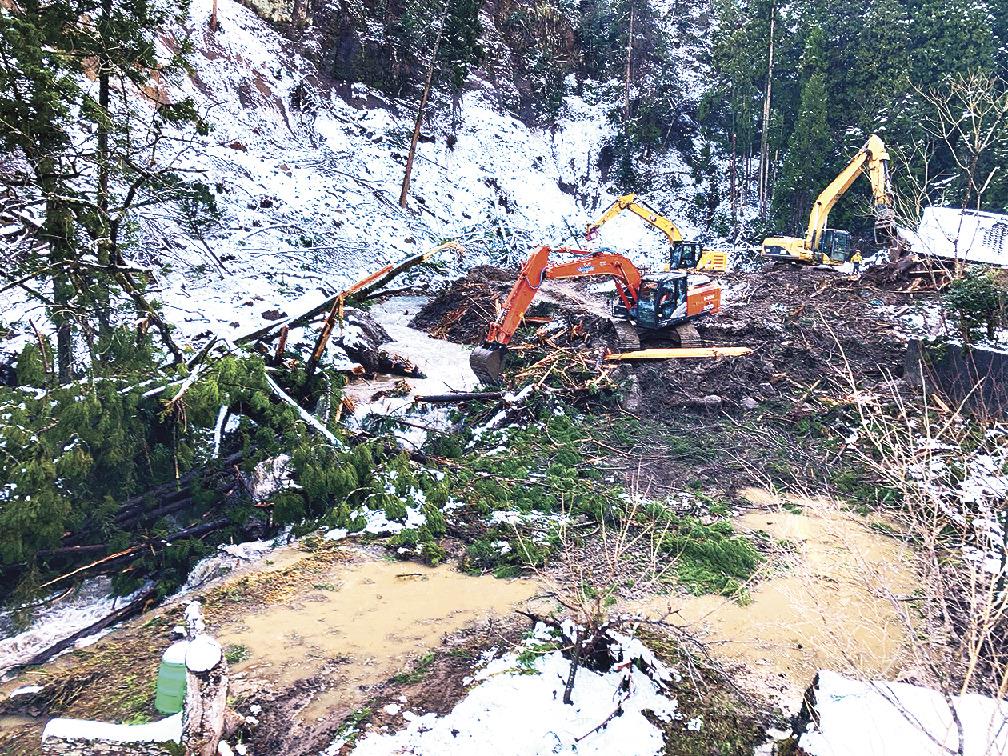 Trên Tuyến Tỉnh lộ 269 Takinata Mitsui, chúng tôi chịu trách nhiệm đi 4,8 km về phía tây từ giao lộ với Tỉnh lộ 1 ở Nagasawa, Mitsui-cho, Thành phố Wajima. Sạt lở đất và hư hỏng đường xảy ra chủ yếu ở sáu địa điểm và khu vực Takimata gần đó bị cô lập. Trong quá trình khảo sát thực địa, chúng tôi đi bộ dọc theo con đường lầy lội phủ đầy cây đổ khi các dư chấn vẫn tiếp tục diễn ra. Sau khi nắm rõ tình trạng sập đổ ở khu vực miền núi bằng cách sử dụng tổng hợp các bức ảnh được chụp bằng máy bay không người lái, công việc rà phá bắt đầu vào ngày 20.