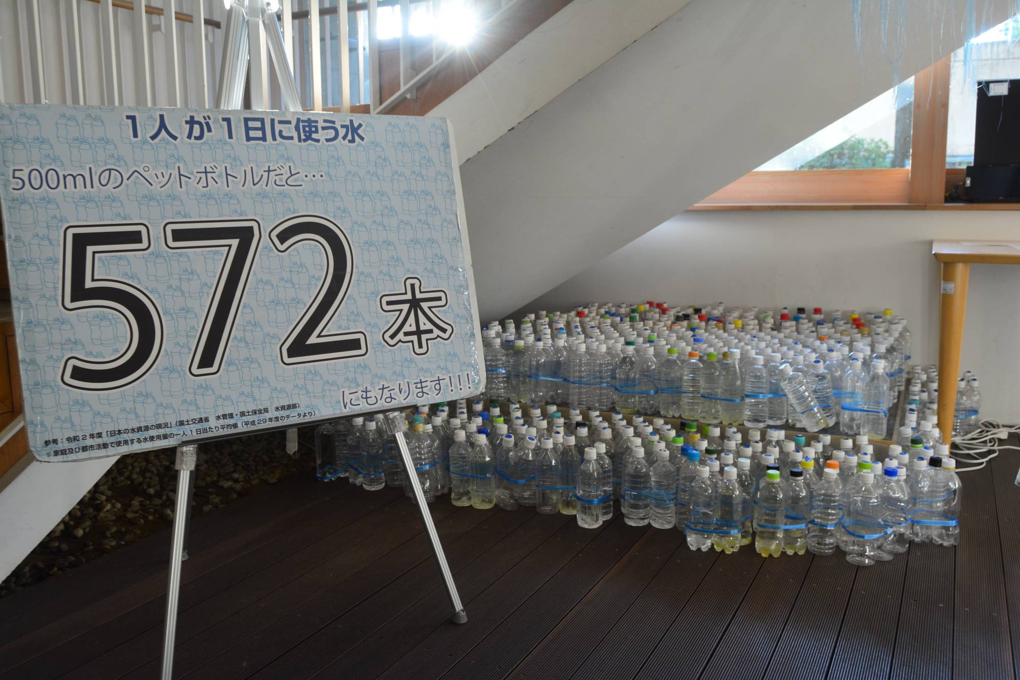 A display at Kyoto's Miyako Ecology Center shows how much water a person uses in a single day. | JOEL TANSEY Một màn hình tại Trung tâm Sinh thái Miyako của Kyoto cho thấy lượng nước mà một người sử dụng trong một ngày. | JOEL TANSEY