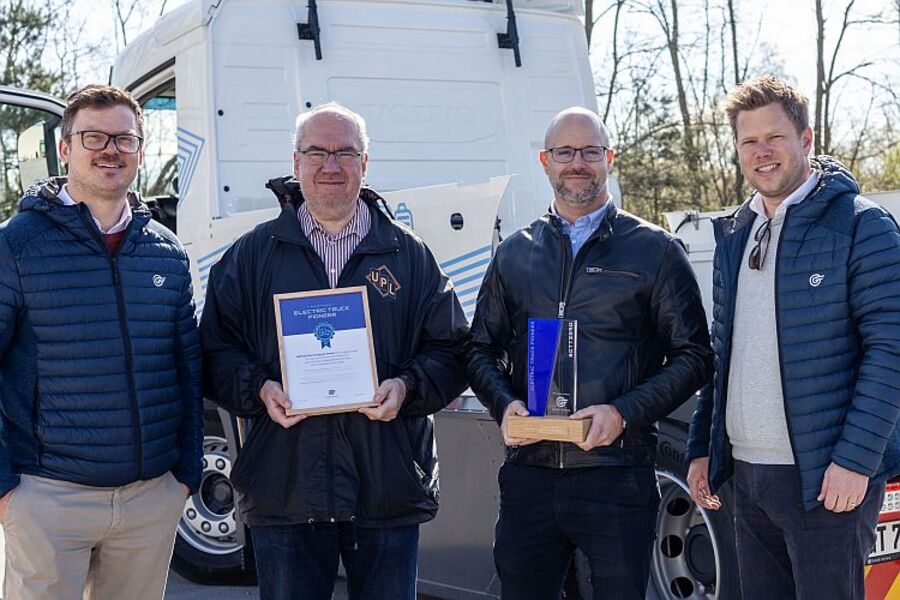 Tại buổi bàn giao xe (từ trái sang): Simon Greiwing, Giám đốc điều hành COO, Greiwing Truck & Trailer GmbH & Co. KG; Volker Commentz, quản lý đội xe, UNITAX-Pharmalogistik GmbH; Martin Urban, Trưởng bộ phận Giao thông vận tải & Lập kế hoạch, UNITAX-Pharmalogistik GmbH và Frederik Rumpf, Giám đốc điều hành, GTT International BV