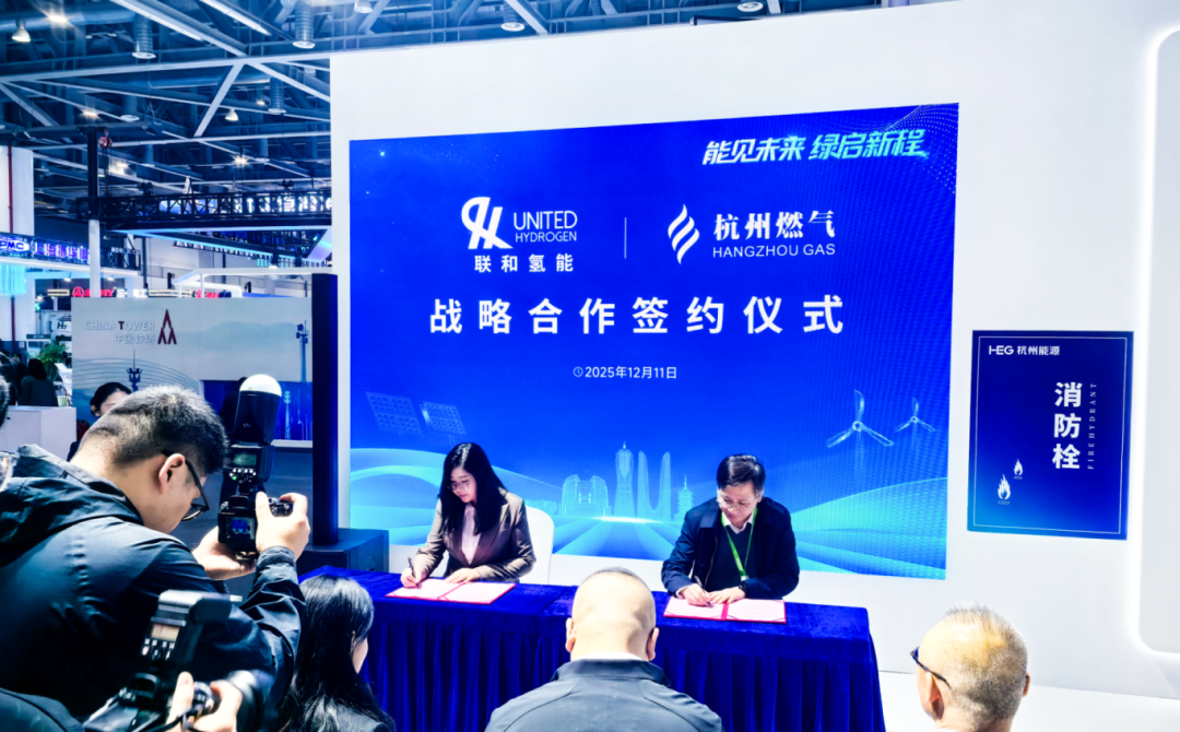 Trong khuôn khổ triển lãm, bà Dương Tĩnh, Chủ tịch mảng Ứng dụng Thương mại Năng lượng Hydro của Zhejiang Lianhe Hydrogen Energy Technology, và ông Xu Tiểu Đông, Tổng Giám đốc Hangzhou Gas Group Co., Ltd., đã ký kết thỏa thuận hợp tác chiến lược. Hai bên thống nhất tăng cường phối hợp trong các lĩnh vực số hóa công nghiệp, phát triển xanh carbon thấp, đồng thời đẩy mạnh hợp tác đổi mới về quản lý năng lượng, lưới điện thông minh và ứng dụng công nghệ xanh.