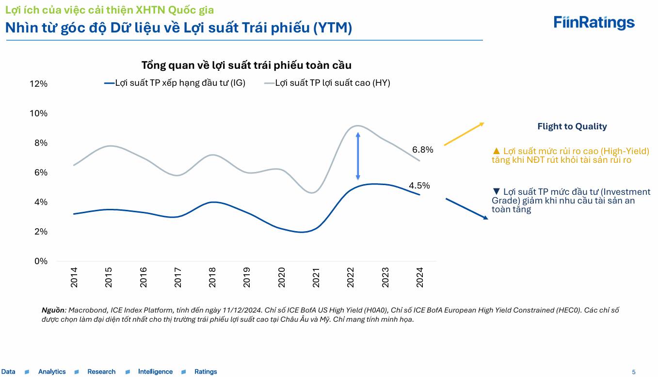 Dẫn chứng thực tế, ông Thuận nhắc đến khoản vay hợp vốn 650 triệu USD của Tập đoàn Masan với lãi suất 8%/năm – một mức chi phí tương đối cao cho kỳ hạn 5 năm. Dù Masan không có xếp hạng công khai, nhưng trần tín nhiệm quốc gia ảnh hưởng rất lớn đến chi phí vay của khu vực tư nhân. Một khi xếp hạng chủ quyền được nâng lên, chi phí tài trợ cho các doanh nghiệp lớn nhất Việt Nam sẽ ngay lập tức giảm xuống.